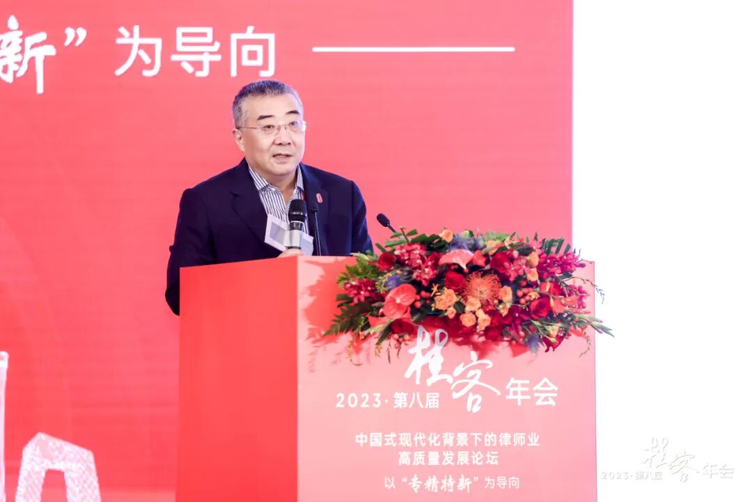 “从律师到律所的专精特新之路”的主题发言环节由律新社创始人、CEO王凤梅主持。建纬研究院院长朱树英,浙江海州律师事务所主任李鸣杰,北京市华贸硅谷律师事务所主任、创始合伙人张丽霞,北京紫华律师事务所创始人、主任钱列阳,浙江仁谐律师事务所主任刘涛,北京高文律师事务所主任王正志,上海靖予霖律师事务所主任,靖霖律师事务所创始人、终身荣誉主任徐宗新,北京浩天律师事务所高级合伙人秦丽萍,北京市中同律师事务所高级合伙人、刑事业务部主任赵铭,美国德汇律师事务所(Dorsey & Whitney LLP)全球合伙人、北京所创始人及管理合伙人刘思锐,律家保创始人、CEO谢贤林,分别代表“40后”“50后”“60后”“70后”“80后”“90后”的律界大咖、精英律师以及法律行业服务者,结合律师专业技能、自身的律所管理经验、律师与其他业务的结合,进行了分享与交流。